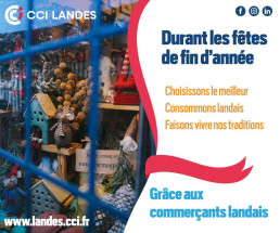 Dans la tradition de Noël, les réseaux sociaux de la Chambre consulaire révèleront au cours du mois de décembre un calendrier de l’avent digital les pépites de notre département : offres spéciales, idées cadeaux, savoir-faire … soit tout pour ne rien manquer des offres de nos commerçants ou encore un guide ludique dans quel on déniche les meilleurs conseils pour faire plaisir à vos proches ce Noël tout en consommant dans les Landes.